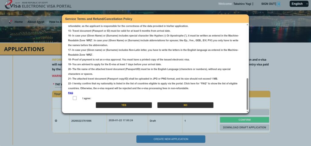 日本国籍の方は、観光目的でエジプトに入国する場合、必ずビザが必要です。